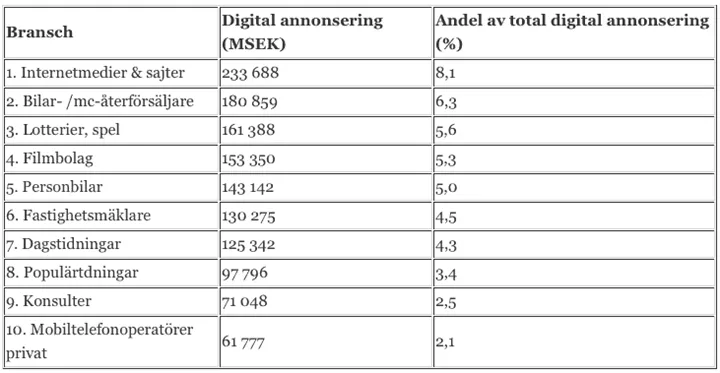 Branscherna som lägger mest på digital annonsering