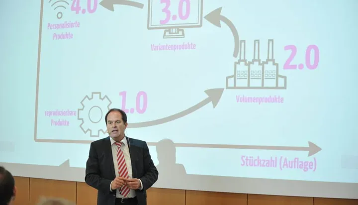 Professor Klaus Thaler från Stuttgart Media University ger sin bild av Grafisk bransch 4.0. (Bild: Heidelberg)[/caption]Grafiska branschen måste erbjuda tjänster som täcker långt mer än tryckning och distribution.Nyligen arrangerade tryck- och medieorganisationer i de tyska delstaterna Baden-Württemberg och Bavaria ett event med rubriken “This is the Future! Printing Industry 4.0”, skriver Heidelberg i en rapport från eventet.– Vi måste väva samman alla kundrelaterade processer, speciellt till olika former av service och tjänster. Genom att, redan idag, använda tillgänglig data på ett smart sätt kan vi ta stora steg i rätt riktning. Tillgång till data innebär tillgång till kunder. Varför kan man inte beställa en trycksak bara genom att trycka på en enda knapp? Frågade sig Steffen Setzer från onlinetryckeriet Laserline i Berlin.Under eventet beskrevs en tydlig trend där branschen går från tryckning till att erbjuda sina kunder helhetslösningar inom digital kommunikation.– Data är branschens nya råvara, sa Michael Neugart, styrelseordförande hos Heidelberger Druckmaschinen inför de runt 150 deltagarna.Även om trenden är tydlig så kämpar den grafiska branschen fortfarande med sin anpassning till den nya verkligheten och hur man skall dra nytta av den.– Det finns i alla fall stora möjligheter i vår bransch jämfört med andra. Vi har länge jobbat digitalt och behöver inte starta från noll, menade Bernhard Niemela, chefredaktör för Deutscher Drucker.Talarna var rörande överens om att det långt ifrån räcker att trycka digitalt och att automatisera sin produktion. Branschen måste erbjuda tjänster som täcker långt mer än tryckning och distribution.