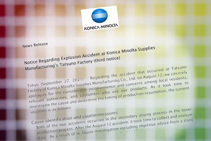 Två tonerfabriker hos Konica Minolta står still efter en explosion. Så här ser planen för återstart ut.