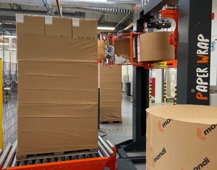 Hållbart kraftpapper erbjuder bättre pallstabilitet än plastfilm enligt företaget.