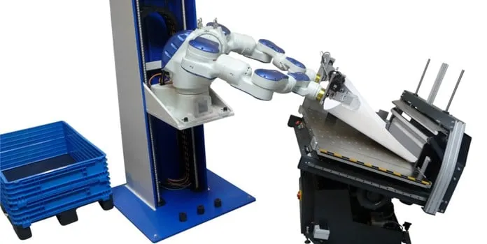 Det är robotföretaget Yaskawa Motoman som i samarbete med Linköpings och Odense universitet som tagit fram det kompletta produkten som nu lyfter papper upp i en skärmaskin. Den visades upp på Drupa 2012 första gången och är nu klar att säljas till tryckerier runt om i världen.