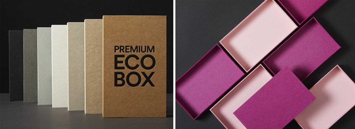 Premium Eco Box är namnet på nya förpackningskonceptet från Göteborgstryckeriet. – Vi har arbetat hårt med att ta fram ett stort sortiment färgat material som du kan använda som det enda materialet i din box. Monomaterial! Sortimentet består av FSC-märkt board, återvunnen board och av miljömärkt papper som vi kascherar (limmar) till rätt tjocklek så att det kan användas i vår boxline, berättar Magnus Iversén, vd på Göteborgstryckeriet.Förra året investerade Göteborgstryckeiriet stort i ny utrustning för automatiserad tillverkning av lådor i premiumkvalitet. Tillverkningsprocessen tillåter att man tillverkar lådor av råmaterialet utan att behöva klä med papper – vilket minskar materialåtgången.Förutom pappersmaterialet används bara lim för att sätta ihop det till en låda i maskinen som skär materialet – så att en traditionell stans inte behövs.– Vi är ensamma om att kunna producera boxar på det här sättet. Inget annat förpackningsföretag har möjlighet att enbart arbeta med råmaterialet eftersom de antingen tejpar ihop lådan eller att det är själva beklädnaden som håller ihop lådan, säger Magnus.