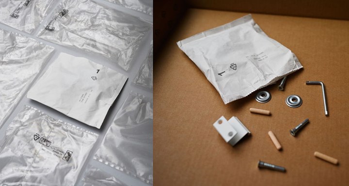 Möbelföretaget ersätter plastpåsarna för skruvar och beslag med ett nästan helt pappersbaserat alternativ inom ramen för målet att fasa ut plast till 2028.