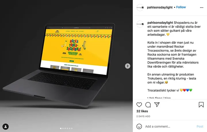 Just nu kör man en "Rocka-Troca-Sockorna"-kampanj som innebär att man under hela mars månad kommer skänka 50 procent av intäkterna från webbshoppen till Svenska Downföreningen. Något Påhlsons uppmärksammat på sin Instagram.