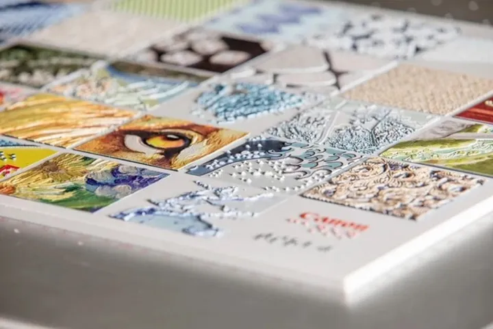 Skapa kreativa utskrifter med upphöjt tryck för inredning, detaljhandel och förpackningar på Canons storformatare.