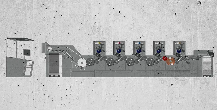 Pressen är en Heidelberg SX74-5-P-H som trycker på ark i formatet 50x70 cm.