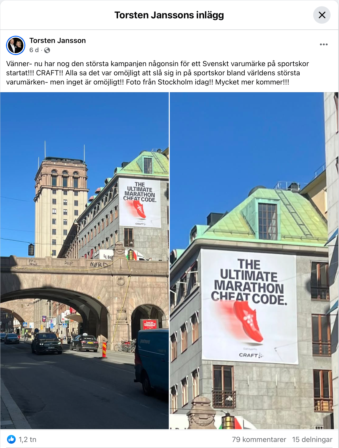 Torsten Jansson skriver på Facebook om Crafts nya kampanj.