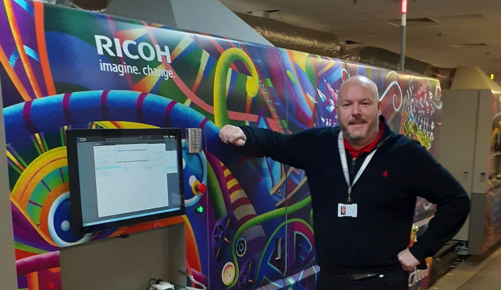 Enligt Ricoh är det världens första arkmatade inkjetpress i B2-format som trycke…