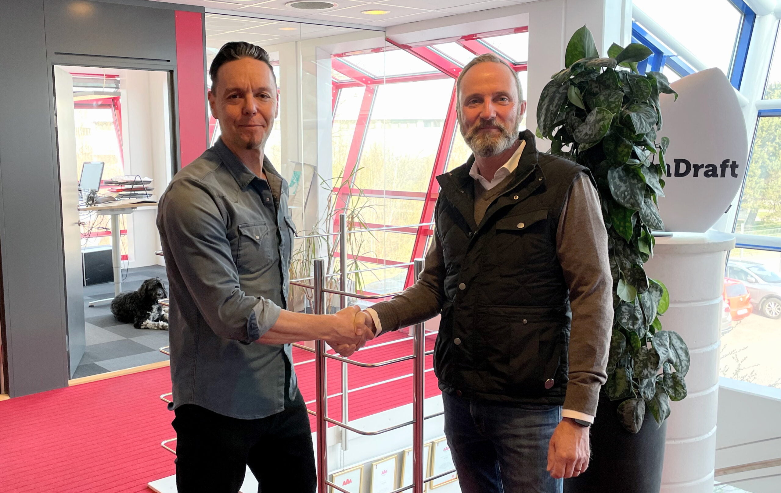 Johan Holmstrand välkomnas till Scandraft av vd Anders Trillkott.